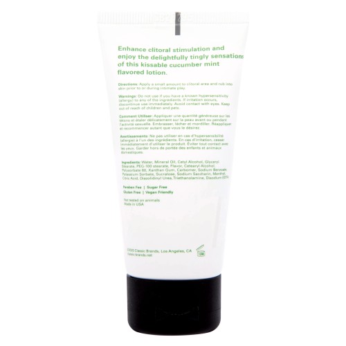 Enhance clitoral stimulation and enjoy the delightfully tingly sensations of this kissable cucumber mint lotion.