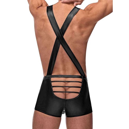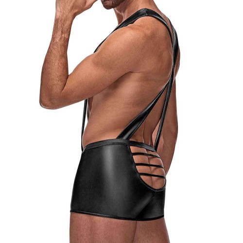 Spice things up in this Cage Matte Cage Back Singlet. Criss cross shoulder straps hold up this sensual piece while strappy cutouts accentuate the back. With stretchy leather look fabric and a supportive comfort pouch, this sexy singlet is not one to be missed.