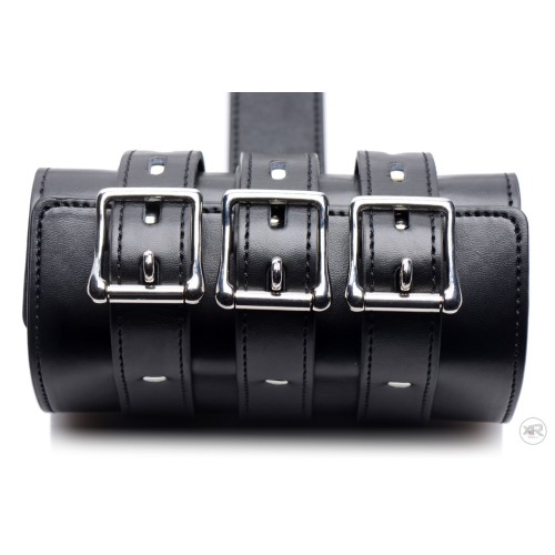 Trap your submissives arms behind their back, while you have your way with them. Made with locking buckles, your plaything will be thoroughly trapped while you put them in any position you desire! Each arm strap is adjustable to accommodate many different sizes, wrapping around the biceps and forearms to keep your sub fully restrained. This bondage accessory will elevate your play sessions with its unique and attractive design!