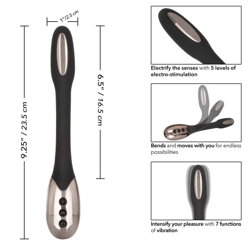 Electrify the senses with the thrilling Volt Electro-Spark. This uniquely flexible electro-stimulation massager is packed with 5 independent functions of e-stim levels and 7 functions of vibration for electrifying pleasure. The slim and flexible wand can be bent into almost any position to deliver pulsating stimulation from any sensational angle.