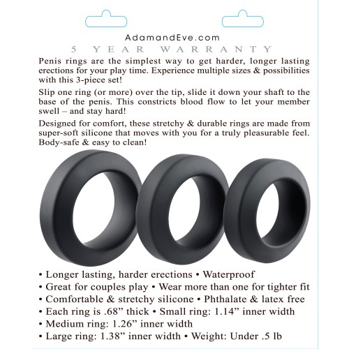 Adam's 3-Piece Penis Ring Set - Black