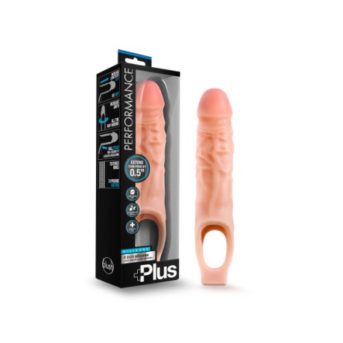 The Performance Plus 9 Inch Cock Sheath Penis Extender offers a smooth, realistic feel while maximizing your potential. Gain more girth and half an inch more length! The internal ribbing creates suction that holds the sheath securely in place. It also amplifies sensation for the wearer. Just insert your penis into the Performance Plus 9 Inch Sheath and then slide your testicles through the ball strap. Then explore new dimensions with your partner! Made of platinum cured silicone, the Performance Plus 9 Inch Cock Sheath is durable, body safe, and easy to keep clean.