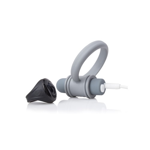 Stretchy true silicone perineum ring. The comfortable ring positions the vibe perfectly against the perineum or testicles and keeps it securely in place. Vooom rechargeable bullet has deep, rumbling 10 functions that wirelessly syncs with remote-control ring or works on its own. The remote is disguised as a ring! Discreet push-button remote control works up to 50 feet away! Made of stretchy silicone to fit almost any size finger.