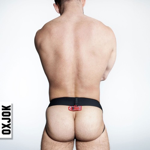 Oxjok's fisterjock has a soft-rib comfort pouch designed to cup your junk - has tri-fold edging plus a deep "j-shape" that holds your pubes to taint. The oxballs brand waistband is firm enough it won't roll and has plushsoft inside for comfort.