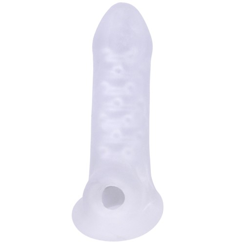 Sometimes, you just want a little more. Slide into the Jacked Up Thin Extender for increased length and girth. Soft and stretchy to perfectly hug your shaft, Jacked Up Thin stretches six inches from its ball-teasing base to a firm head in a sheer, frosted material that looks and feels incredible. The extenders ribbed, studded interior stimulates the penis, while the attached ball strap holds it in place and tugs at the balls for added pleasure with every thrust.