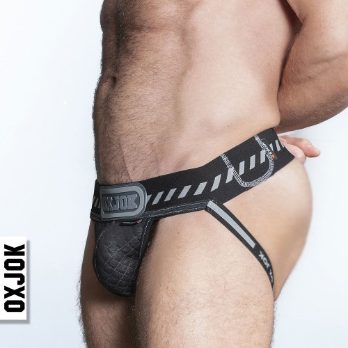 Hazzard stripe waisteband with the 3-D rubber oxjock label up front and center, 3-fold pouch edging for comfort and embroidered "packer" on directly over your buttcrack on the waisteband back for rear-view cockiness.