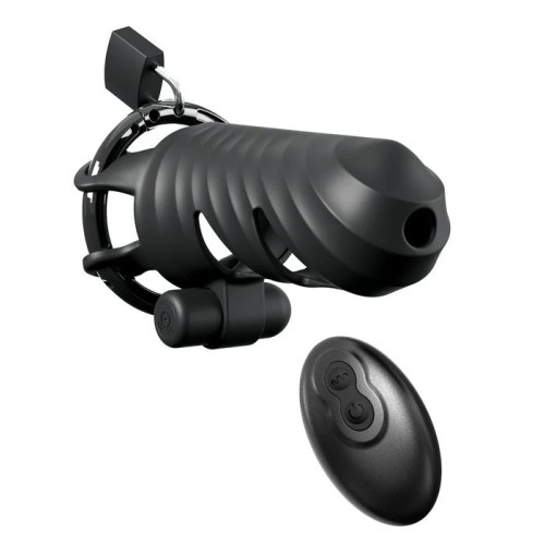 Surrender has never felt so secure with the Remote-Controlled Vibrating Cock Blocker! Fasten the lock, hide the keys and make sure your partner keeps their cock where it belongs! This high-end chastity cage is made from Elite Silicone and is designed for comfortable long-term wear. The chastity device is lightweight, flexible, and breathable, but once the lock is applied, your subject cant get hard no matter how aroused they are!