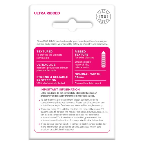 Lifestyles Pleasure Ribbed Condoms - 3 Pack
