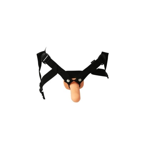 Fits over your flaccid penis. Great for men suffering from premature ejaculation or erectile disjunction. This 4-way adjustable harness keeps your mans comfort in mind and it comes with a 2 inch O-ring and has snaps that will accommodate other sized O-rings. Introductory level dildo can be switched out. This superior harness comes with two straps that wont pinch the ball sac. Caresses skin, softer, does not cut into skin. Cinch down and stay put. Fits hips up to 69 inches and comes with a hollow 6.5 inch dildo. Includes: 1- 4 way Adjustable Harness. Fits up to 69 inch (175.3cm) waist. 1 Hollow Dildo 6.5 inch (16.5cm)