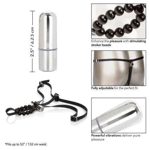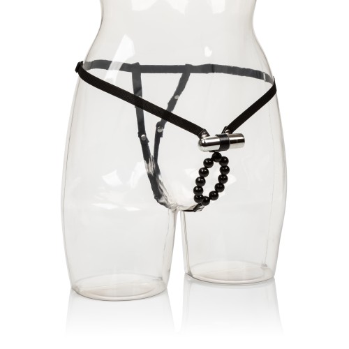 Fall in love with intense stimulation with the couples-friendly Rechargeable Silicone Lover's Thong with Pleasure Beads. Tease and tantalize external sweet spots with the thrilling stroker beads, sexy thong harness design and powerful 3-speed bullet massager. The rechargeable bullet can be used independently from the stroker panties for mind-blowing stimulation. The ravishing roller beads are designed to hug your most intimate curves for sensational couples stimulation. While the pleasure beads give her tantalizing external stimulation, he will adore the intense shaft stroking pleasure.