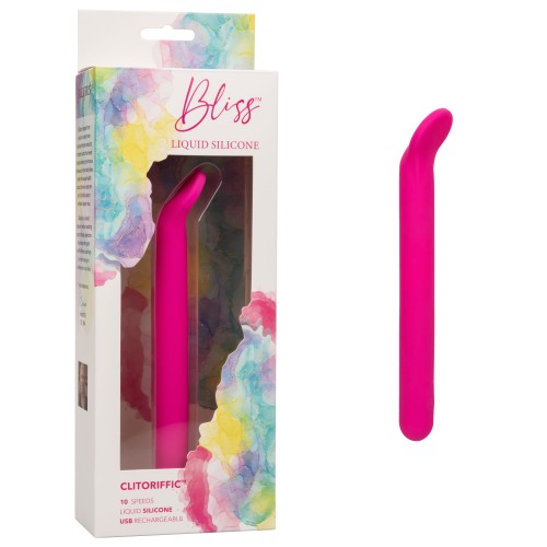 Indulge in a pleasure paradise with the teasing Bliss Liquid Silicone Clitoriffic. This sensational vibe features a flexible and flat tip, body-forming liquid silicone design, and 10 powerful functions of vibration. The soft, maximum contact tip and 100% liquid silicone body are perfect for caressing internal and external sweet spots. Get playful with each increase of the 10 incremental speeds of vibration with the easy-touch control button. Effortlessly control pure pleasure with an easy-touch silicone button and hold for 3 seconds to turn on or off. The ultra-plush liquid silicone is great for exploring sensual sweet spots and intimate pleasure points with ease. Use the smooth single button control to enjoy up to 110 minutes of vibrating pleasure. Charge up your passion in only 1.5 hours by plugging the provided USB cable into the self-sealing charging port on the base of the massager.