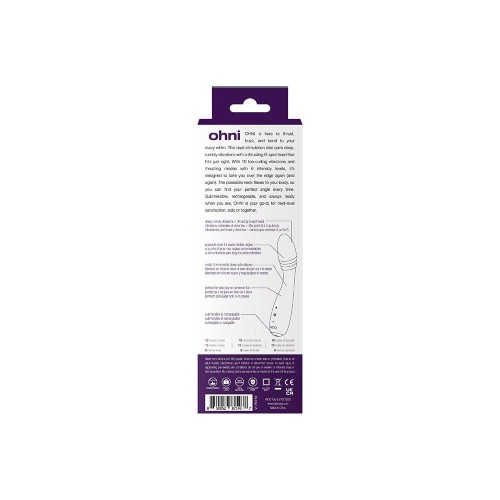 Ohni is here to thrust, buzz, and bend to your every whim. This dual- stimulation vibe pairs deep, rumbly vibrations with a thrusting G-spot head that hits just right. With 10 toe-curling vibrations and thrusting modes with 6 intensity levels, it's designed to take you over the edge again (and again). The poseable neck flexes to your body, so you can find your perfect angle every time. Submersible, rechargeable, and always ready when you are, Ohni is your go-to for next-level satisfaction, solo or together.