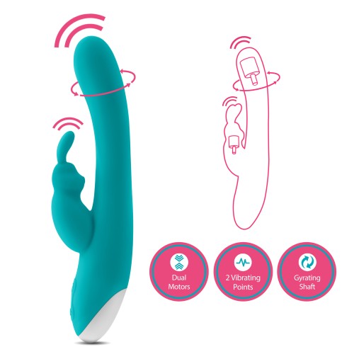 Sultry, sexy, and slim, Rave Rabbit features 7 vibrating functions, 2 points of vibration, and a 3 speed gyrating shaft! Rave Rabbit's petite shaft and head offers thrilling G spot sensation, while the contoured clitoral stimulator excites your most sensitive spots. Explore its powerful vibrations solo or with a partner, in your bedroom or in the bath. Made of smooth silicone, it is body safe and pthalate-free. Rave Rabbit is IPX7 waterproof, USB rechargeable, and easy to clean.