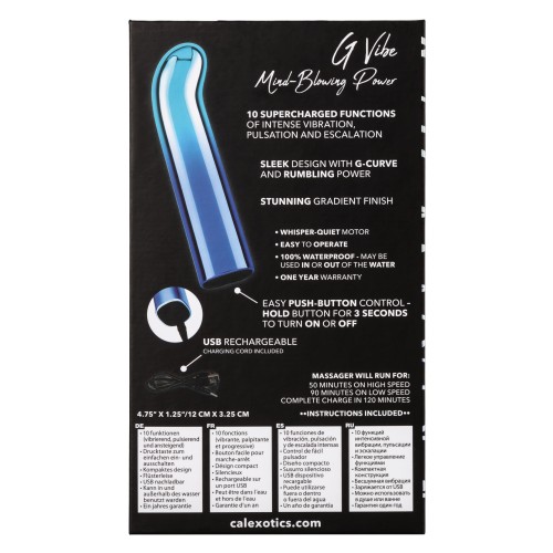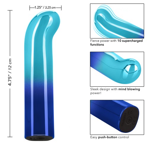 The shining Glam G Vibe bullet is a sleek G-curve vibrator packed with 10 functions of high-intensity vibration. Fiercely powerful and whisper-quiet this gorgeous gradient bullet is ready to play wherever pleasure takes you. Add a touch of glamour to your toy box with the bold metallic ombr finish.