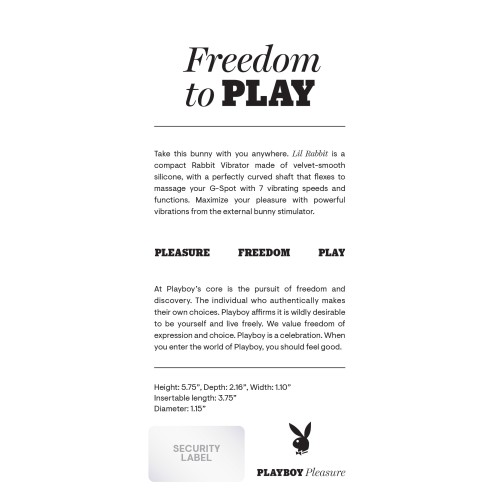 Take this bunny with you anywhere. Lil Rabbit is a compact Rabbit Vibrator made of velvet-smooth silicone, with a perfectly curved shaft that flexes to massage your G-Spot with 7 vibrating speeds and functions. Maximize your pleasure with powerful vibrations from the external bunny stimulator.