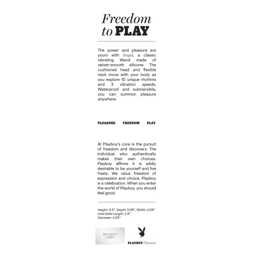 The power and pleasure are yours with Royal, a classic vibrating Wand made of velvet-smooth silicone. The cushioned head and flexible neck move with your body as you explore 10 unique rhythms and 3 vibration speeds. Waterproof and submersible, you can summon pleasure anywhere.