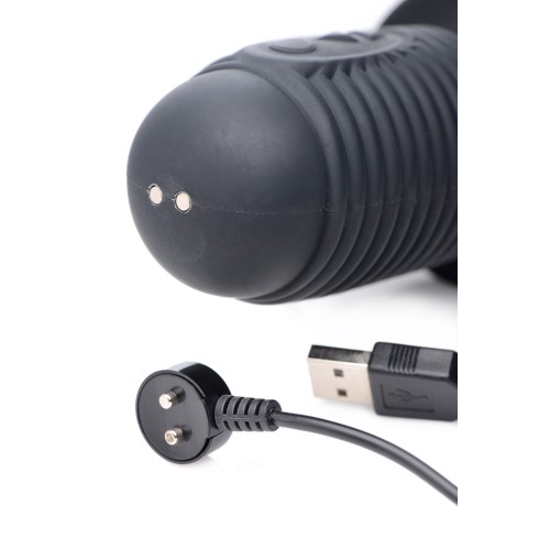 This big black boner is rechargeable for powerful vibration and thrusting action! Grab the handle and pound yourself, or your partner, into ecstasy! The ribbed silicone hilt allows you to get a secure grip while the motor does its job. Treat your orifice to 7 levels of thrusting as the supple, veiny shaft pumps up and down on its own! Meanwhile, a separate button allows you to play with 3 speeds and 7 patterns of vibration. The premium silicone material is non-porous and phthalate-free.