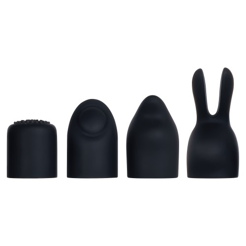 4 Unique silicone cap shapes slip over tip: Lipstick, Tickler, Bunny Ears, Fin