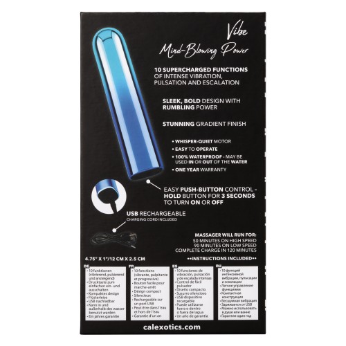 The shining Glam Vibe bullet is a sleek super-powered vibrator packed with 10 functions of high-intensity vibration in a sleek metallic package. Fiercely powerful and whisper-quiet, this gorgeous gradient bullet is ready to play wherever pleasure takes you. Add a touch of glamour to your toy box with the bold metallic ombr finish.