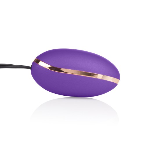 Elegant silky smooth Satin Finish stimulator for couples or solo play. Luxurious designer accents. 7 powerful functions of vibration pulsation and escalation. Ergonomic controller with push button control and auto on and off.