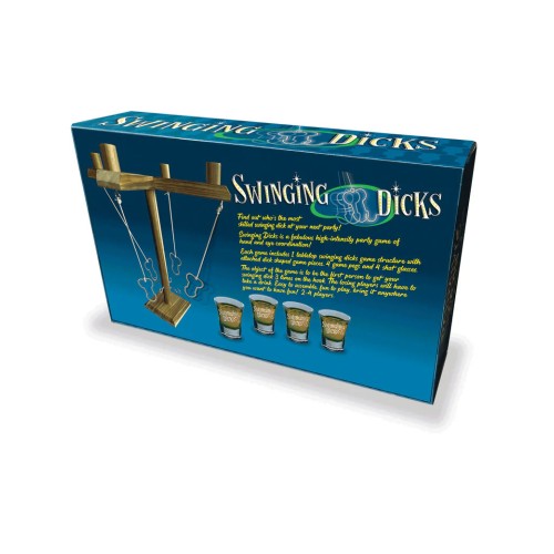 Find out who's the most skilled swinging dick at your next party! Swinging Dicks is a fabulous high-intensity party game of hand and eye coordination! Each game includes 1 tabletop swinging dick game structure with attached dick shaped game pieces, 4 game pegs and 4 shot glasses.