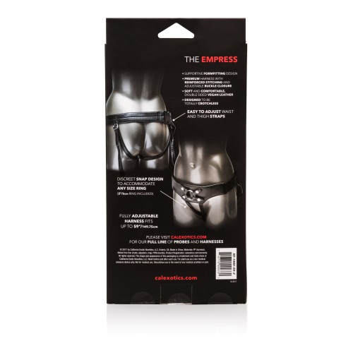 The Empress is a premium harness with reinforced stitching and a sturdy, adjustable buckle closure. It's discreet and easy to remove snap design accommodates any ring size.