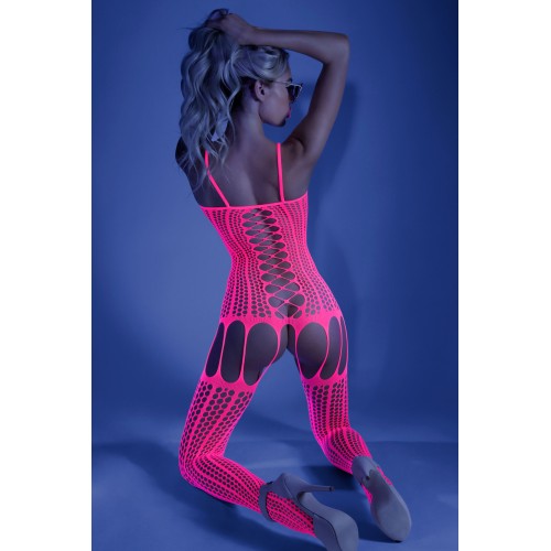 Hypnotic Crisscross Stripe Bodystocking - One Size - Neon Pink