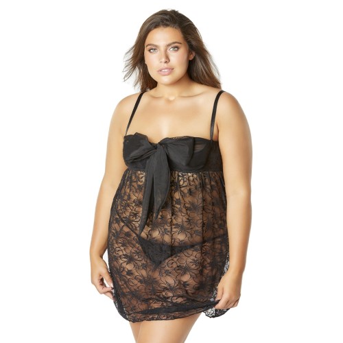 Lace Empire Babydoll With Functional Tie Shelf Cups G-String - Black - 1x/2x