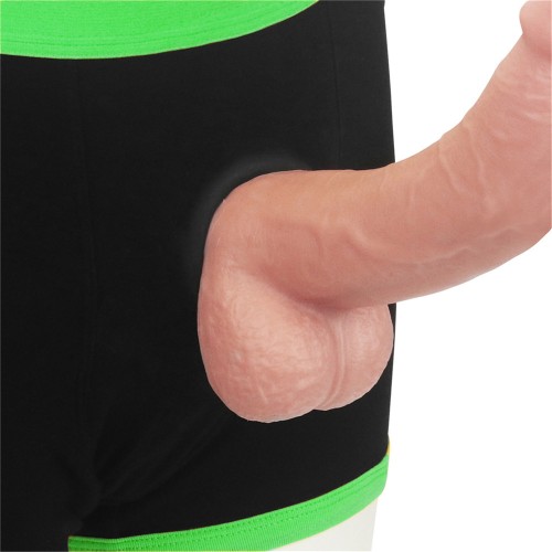 The Strap-On Boxer Shorts designed for comfortable, sexy strap-on play! The no-buckle, no-hassle strap-on boxer enhances your pleasure in an instant. Made of soft fabric, these boxer harness can be worn as underwear throughout the day and night. There are hidden bullet vibe pockets for extra buzz and a truly thrilling experience for both parties. The butt enhancement design features two sexy cutout circle openings on back to naturally lift and accentuate cheeks!