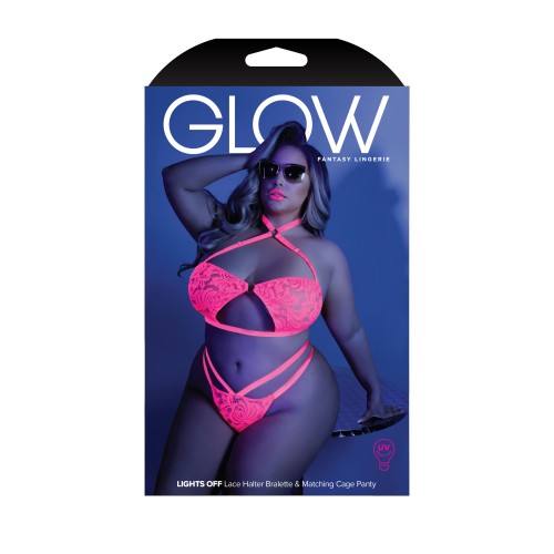 Lights Off Lace Halter Bralette and Matching Cage Panty