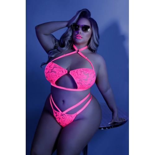 Lights Off Bralette and Panty - Queen - Neon Pink