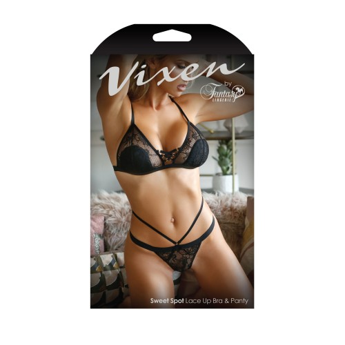 Sweet Spot Lace Up Bra and Caged Panty - One Size