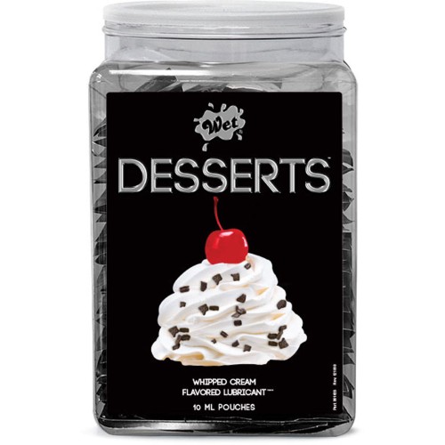 Make sex yummier with Wet Desserts Flavored Lubricants. Our rich, savory flavors taste just like the real thing with no bitter after-taste. Lightweight and stain-free, this silky smooth formula washes away easily with water and is available in five yummy flavors. Enjoy Frosted Cupcake, Salted Caramel, Whipped Cream, Bananas Foster, or Crme Brulee with your partner for heightened intimacy and sweet satisfaction.