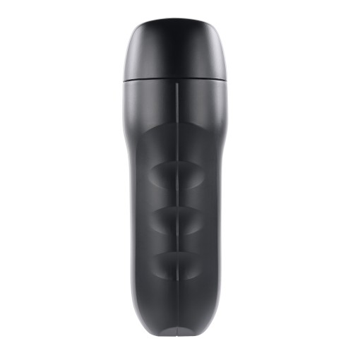 Experience the ultimate release with this soft and stretchy canister stroker that's incredibly life-like. Slip through the pink vaginal lips and feel the tight inner channel that's textured for a realistic ride, then enhance your experience with the squeezable canister that just might put you over the edge! Try the included vibrating C-ring to keep blood flow at its maximum potential- and watch the free movie download for erotic inspiration. Removable sleeve for cleaning, water submersible.