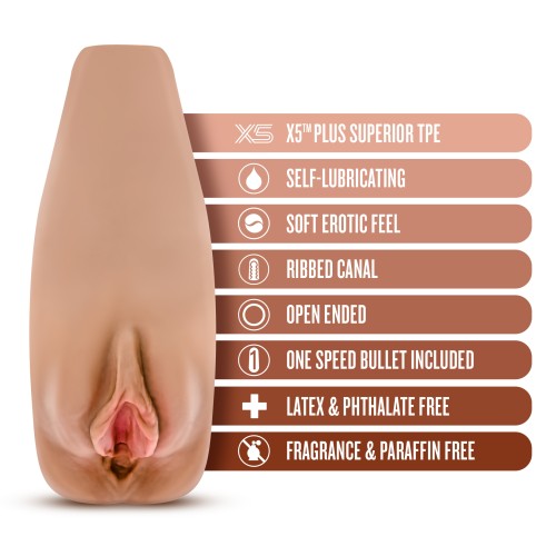Im Renata and Im ready to deliver pleasure and entice your fantasies. Add a little bit of water or saliva and delight in my self-lubricating abilities as I fit you like a glove. I provide an array of sensations with my ribbed canal and am open ended for easy cleaning. I also come with a 1-speed bullet for powerful vibrations during play. Made of ultra soft X5 Plus, I'm free of phthalates, paraffins, latex, and I look and feel better than the real thing.