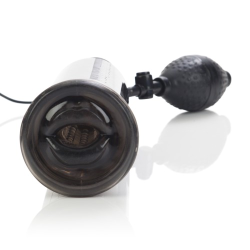 Super-powerful robotic sucking and stroking action. All-purpose pump has a form fitting vertical stroking textured sleeve powerful vibrations incredible vacuum sucking action and a soft stretchy vacuum sleeve. Independent multi-speed controls for vibration and stroking action.