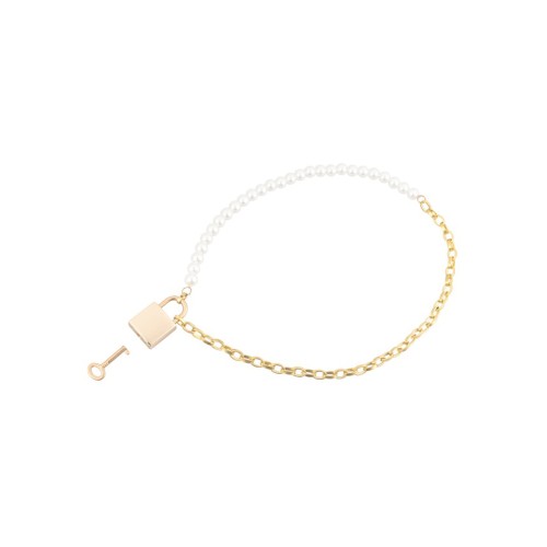 Live in submissive luxury with the Pearl Day Collar. Feel like youre living the high life with illustrious faux pearls and gold chain draping your neck all while connected by a mysterious lock and key that shows you belong to your partner. Use discretion by wrapping the pearls around your wrist and locking it to the chain to create a new bracelet collar and extend your submission into everyday wear.
