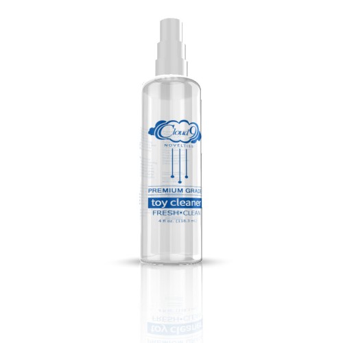 Cloud 9 Premium Grade Fresh Toy Cleaner Triclosan-free Premium Toy Cleaner 4 ounce in convenient travel size. Fresh Toy Cleaner is a cleanser powerful enough to clean surface bacteria. It safely disinfects all personal products and is water soluble. Safe for all types of materials from plastic to realistic rubber on dongs. Keep your favorite pleasure products clean and safe with spray on cleaner. Our unique Cloud 9 agent gently cleans and protect, yet it it is mild enough to use every time. Packaged in a convenient pump spray bottle with a sealed cap.