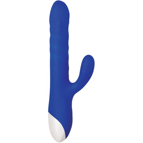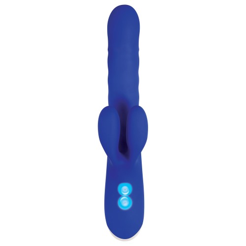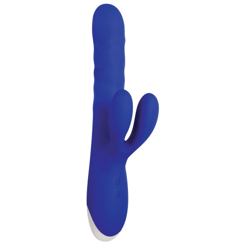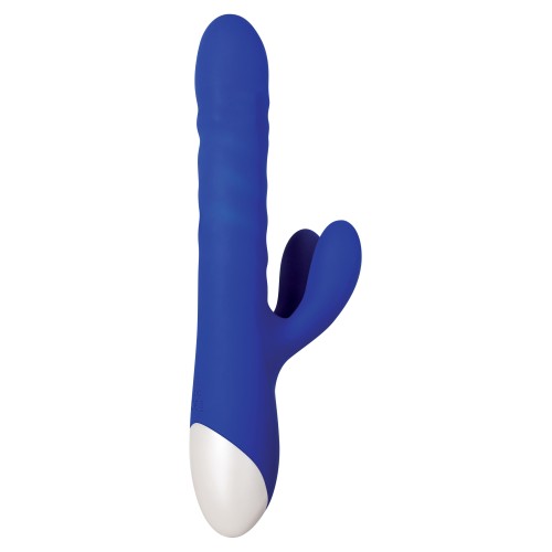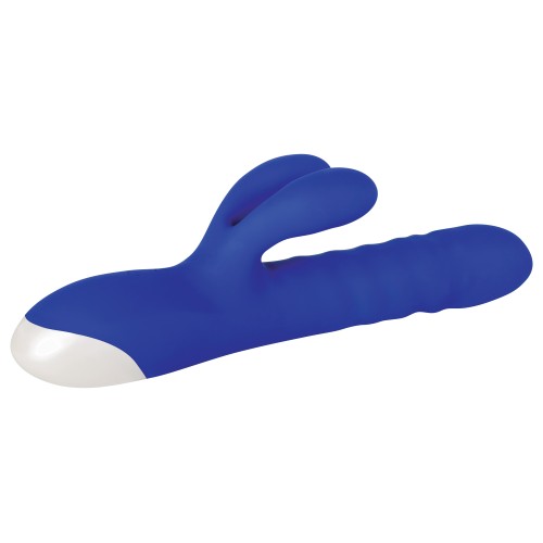 This powerfully intense vibrator is a guaranteed home run! The thrusting action and twirling beads in the tip of the shaft deliver a tantalizing internal sensation with three delicious speeds, and the high scores really add up with the double-motor rabbit ears! Two large, floppy, flexible clitoral stimulators, each with their own 10-speed motor, resonate deep into the clitoral nerves which extend well inside the body. This rumbling ride pushes the boundaries of extreme pleasure, and the level of intensity is up to you! Enjoy in the bath or shower as it's completely submersible, and recharge when you need to via USB.