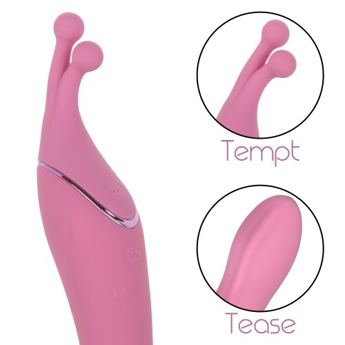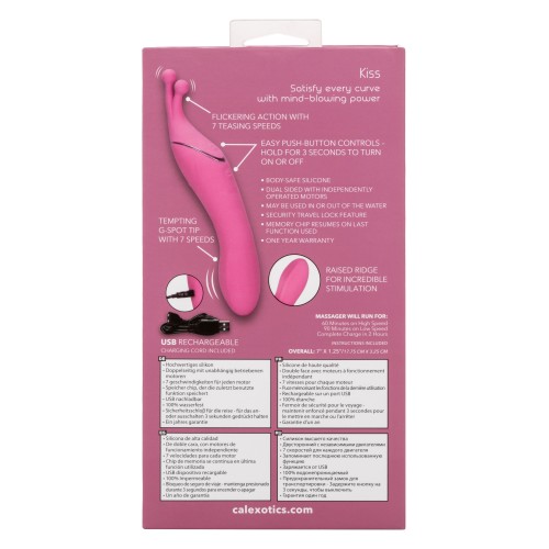The Tempt & Tease Kiss is a dual sided massager that knows exactly what you're craving. Feel the heat rise with the dual ended massager with two distinctive ends, two powerful motors, and 7 independently controlled vibration functions. With a versatile shape and two powerful vibration motors in each end, you'll be reaching new climatic heights in no time.