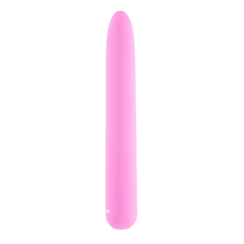 A classic shape with powerful vibrations! This traditional, straight vibe is tall and thin at 7" (17.78cm) high and just over 1" (2.54cm) in girth, delivering delicious possibilities for satisfaction with 10 powerful speeds and functions guaranteed to wow your erogenous zones. With a gently tapered tip, body-safe creamy smooth material and an easy to use 1-button control panel, it's the ultimate nightstand go-to. Enjoy during the shower or bath time too, as it's completely water submersible! Magnetic rechargeable, easy to clean and latex-free.