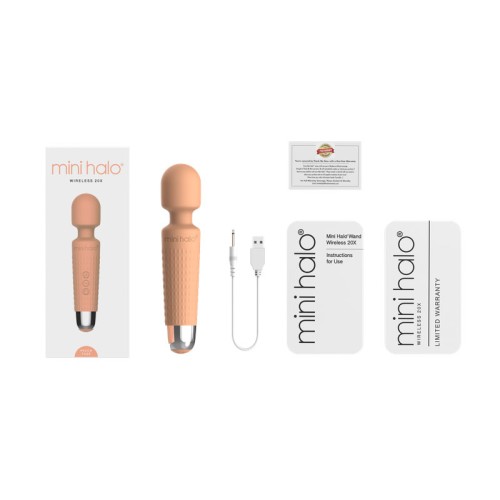 Mini Halo Peach Fuzz Wand Massager Rechargeable. 20 vibration patterns and 8 speed strengths to tailor your massage experience. These massagers may be small, but do not let that deceive you. You will be suprised how powerful these can be! Bendable neck for flexible massage action right where you need it. Special high strength motor provides exceptional power, yet quiet vibrations. Ultra soft, premium grade silicone for complete comfort. The Mini Halo is rechargeable and comes with a USB power cord with optional attachable plug in. These mini wands are water resistant. Made using body safe materials Phthalate free Silicone head, ABS plastic handle.
