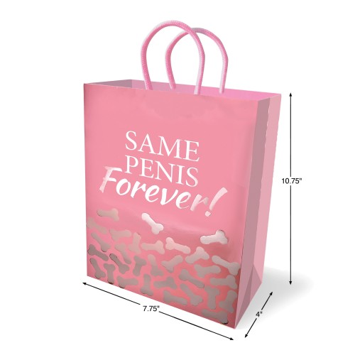 Looking for the perfect gift bag for your bachelorette that will leave a lasting impression? Look no further than the Same Penis Forever Gift Bag! Crafted with top-notch materials and exquisite attention to detail, this luxury bag is made from thick, sturdy card stock paper, ensuring durability and elegance. The woven handles add a touch of sophistication, while the foil stamps give it a playful and eye-catching appeal. This delightful gift bag is sure to bring joy and excitement to your bachelorette or bridal occasion.