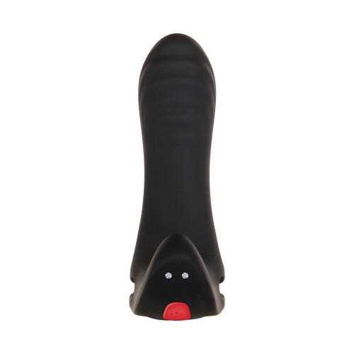 Get bigger and buzzier with the size-augmenting power of this unique vibrating penis enhancer that's great for couples play. Two soft and stretchy loops rein in the balls and penis while the penis is supported along the top, seamlessly creating more insertable width for satisfying penetration. The remote control operates two 9-speed motors, letting you stay focused on pleasure with internal and external stimulation. This unique toy works for anyone with a penis looking for a boost in girth and a vibrating advantage, even underwater, as it's completely submersible. Fully rechargeable toy and remote.