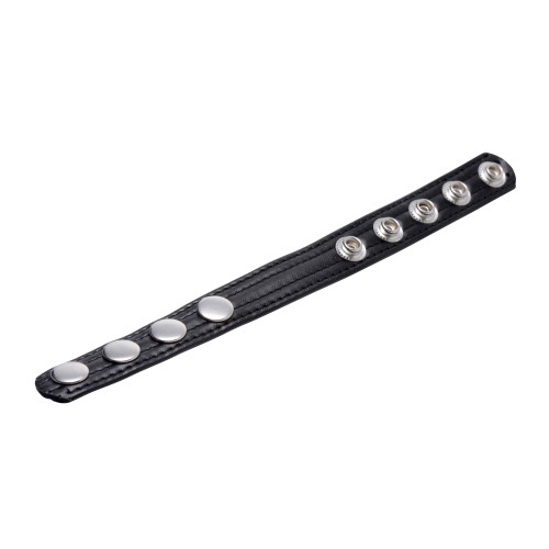 Maintain a harder, stronger, and more sensitive erection when you wrap this snap-on cock ring around your cock and balls! Restrict blood flow by tightening this comfortable and attractive strap around your package, creating a bulging hard-on that will last through your most tantalizing endeavors. Solo or with a partner, you will love the enhanced sensation of every stroke, thrust, suck, and fuck! When you are ready to ejaculate, just release the snap to