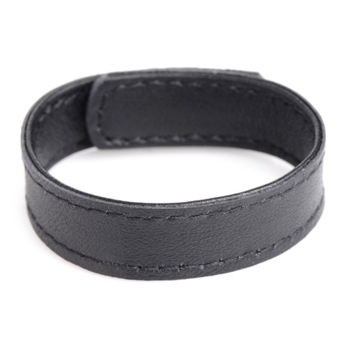 This cock ring is simple and easy to use. Perfect for beginners starting out, theres no worry about abrasive metal, sizing, or getting a size thats too small. The leather strap wraps around the base of the cock and has a velcro closure. Find what fits best for you. Over time, the leather will stretch slightly if needed for a custom fit. If it ever gets uncomfortable, simply pull the strap to pull the velcro apart and release.