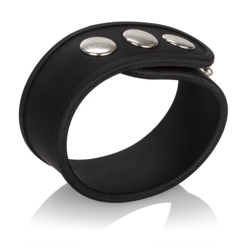 Stretchy and comfortable, the Silicone Tri-Snap Erection Ring is made from soft, smooth, and durable Silicone. It's three-snap design is fully adjustable. The luxurious Silicone is body-safe and the heavy-duty hardware is nickel-free.