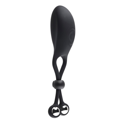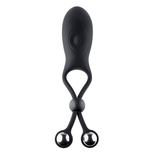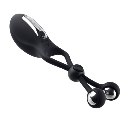 Introducing a unique ring design thats super comfortable and fiercely titillating. Adjustable silicone straps tie around you like a drawstring and finish with two stainless-steel balls that dangle and massage as they move. The chunky centerpiece features a powerful tapping motor that stimulates in 10 glorious speeds wherever you place it - and the 1-button control is nestled into a stylish chrome-finished plate. Enjoy your long-lasting pleasure underwater as its completely submersible, easy to clean, and recharges via USB.