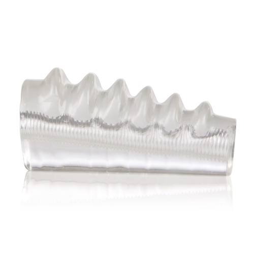 Super stretchy comfortable enhancer with ridged surface will add girth and provide extra stimulation.