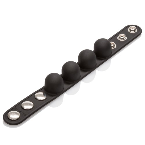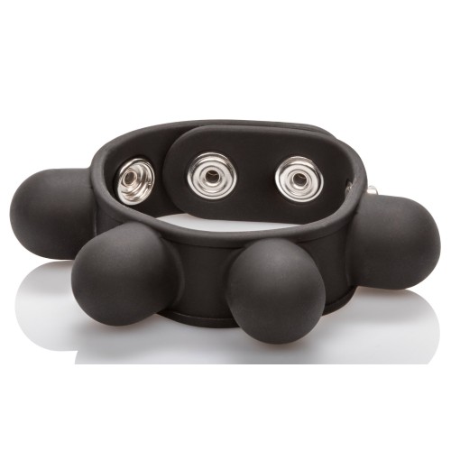 Maximize your orgasmic pleasure with the Silicone Tri-Snap Scrotum Support Ring. The comfortable to wear, easy to use erection enhancer is designed to extend your pleasure, support stamina, and maintain a rock hard erection. The super stretchy, fully adjustable cock ring makes a great addition to an erotic toy collection, and is suitable for first time and experienced users The discreet and durable, medium sized ring is made from soft, thick and ultra stretchy phthalate free, unscented silicone, and ensures a comfortable, fully adjustable fit. The tri-snap design features heavy-duty, nickel-free hardware and a sensually smooth, stretchy built-in support ring. Increase the tantalizing tingles and sensations by using a quality lube. Before and after play, clean the support ring with mild soapy water or a toy cleaner spray.